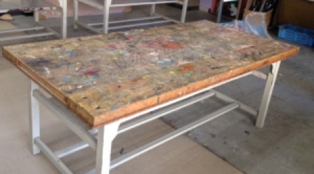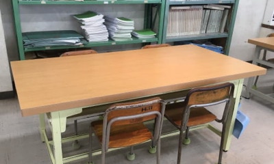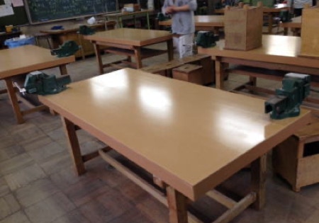 生徒机の同じような型の美術机はデスクガードも特注製作いたします。