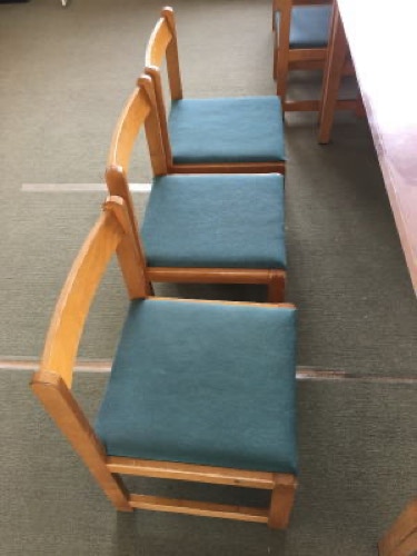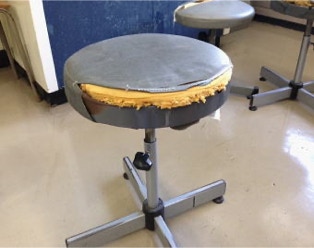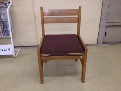 パイプ椅子や食堂椅子などの生地は、劣化すると色褪せてきて、厚みも薄くなり、やがて破れます。